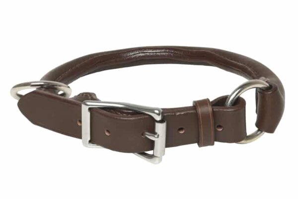 Le collier cuir rond est un collier dont le cuir est retourné pour lui donner sa forme ronde. La couture se trouve à l’intérieur.