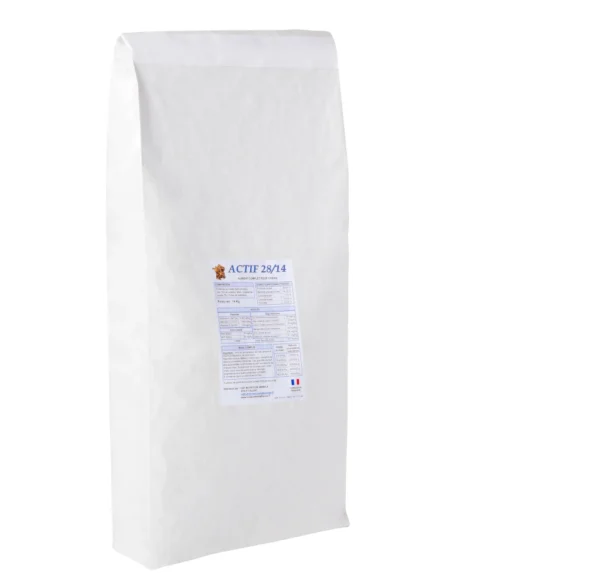 Les croquettes françaises pour chien adulte ACTIF 28/14 sont spécifiquement élaborées pour les chiens à forte activité physique (canicross, agility, chasse…) ou pour les chien à forte musculature type molosse.