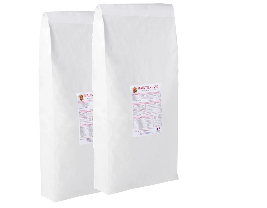 Les croquettes MAINTIEN 25/10 sont fabriquées en France, pour chien adulte de 18 mois à 8 ans, à activité normale à modérée.